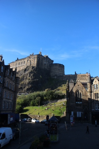 The next day we clambered down the stairs to set off for the Royal Mile and Edinburgh Castle. For some absurd reason we ignored the bus stop which was right in front of our place and trudged up the very long hill. Bad move. 4 pounds each would buy us an all day bus pass (which we bought the next day), but by the time we made it to the freaking castle our legs were so tired! Funny how they put castles way up on top of hills, right?